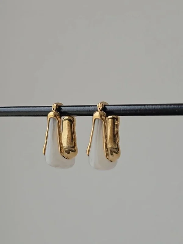 Çelik Dikdörtgen Beyaz Mineli Küpe