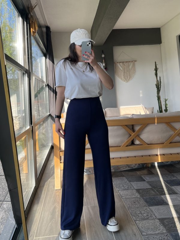 MODAL KUMAŞ LACİVERT PALAZZO PANTOLON