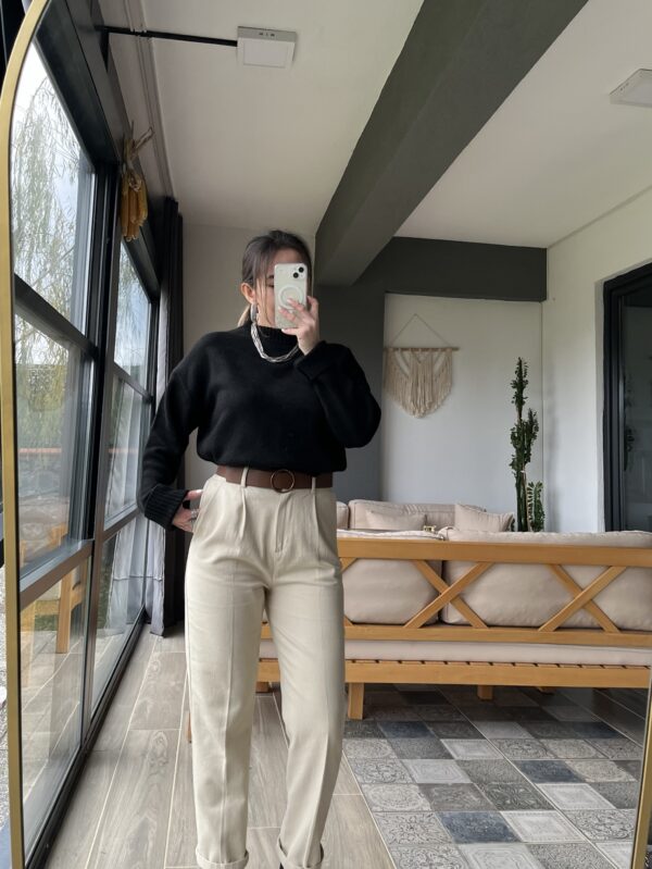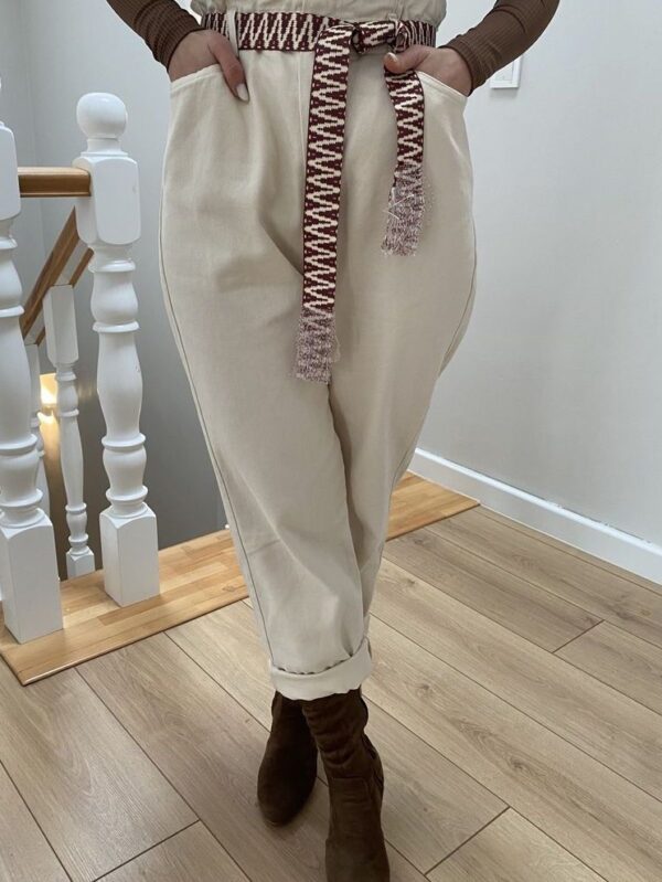 KETEN KEMER DETAYLI PANTOLON NATUR