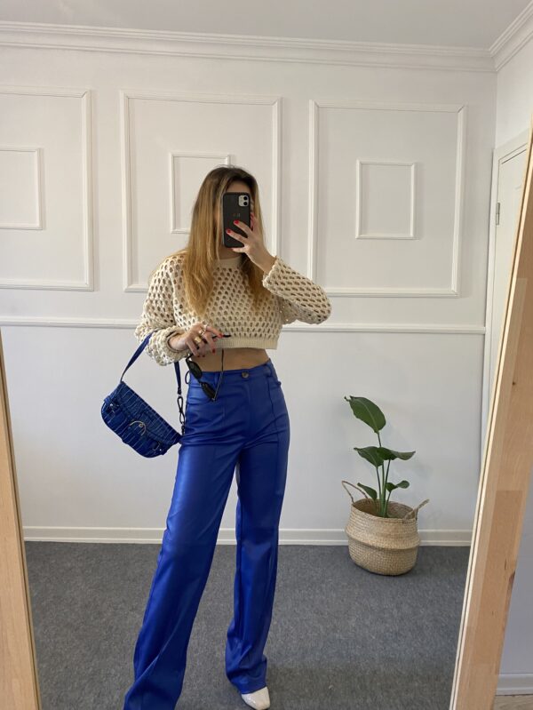 MARKA MODEL DERİ PANTOLON SAKS MAVİ