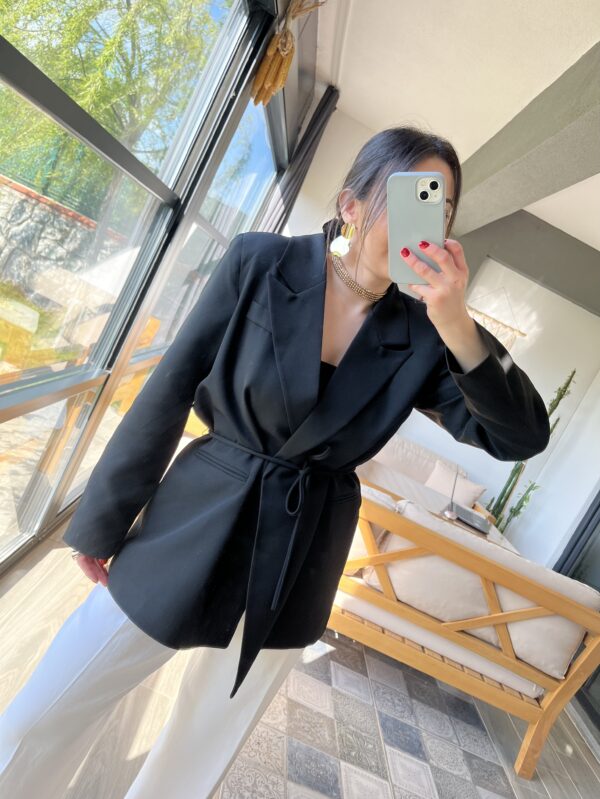 SİYAH İP BAĞLAMALI BLAZER CEKET
