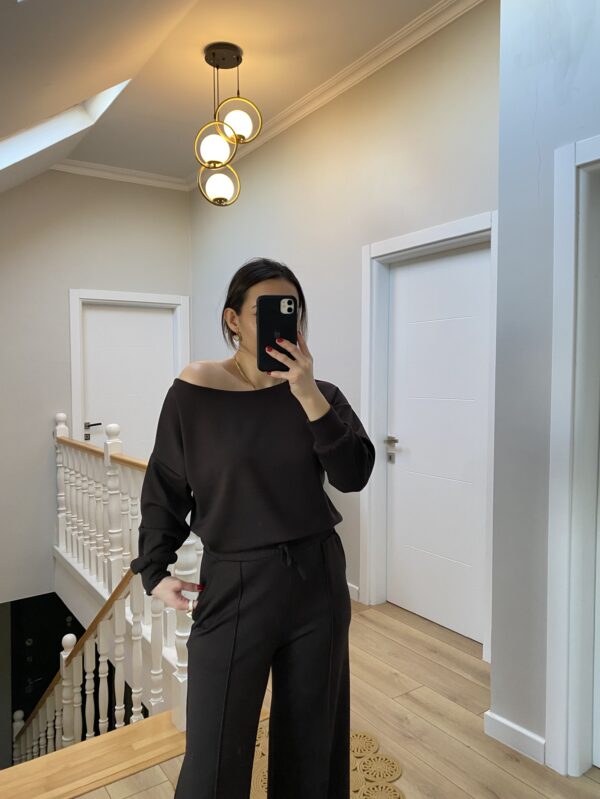 Kahverengi Kayık Yaka Modal Kumaş Takım