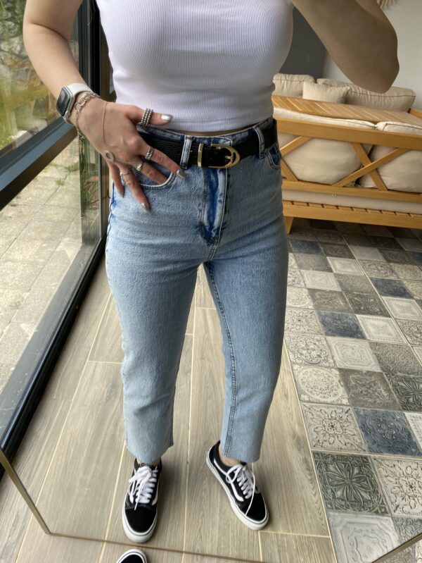 Boyfit Kesik Paça Buz Mavi Jean