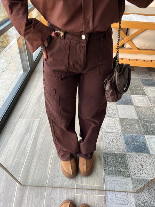 Quzu Kargo Cepli Kahverengi Pantolon