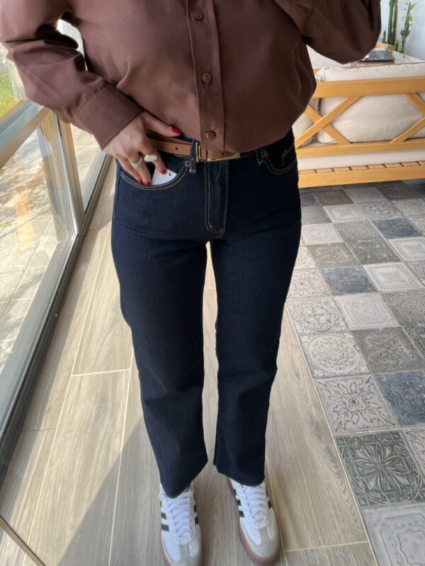 Boyfit Kesik Paça Lacivert Jean