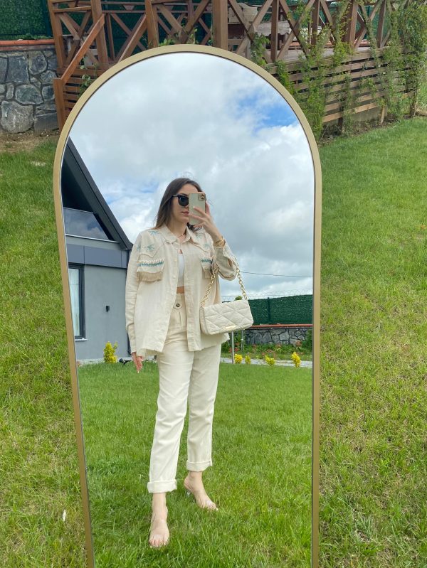 TAŞ DETAYLI İŞLEMELİ KETEN GÖMLEK