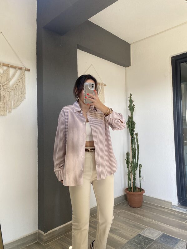 MARKA MODEL KAHVERENGİ BEYAZ ÇİZGİLİ GÖMLEK