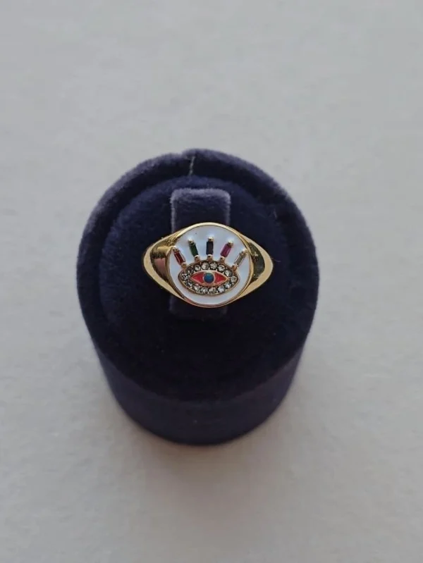 Çelik Ayarlamalı Göz Beyaz Taşlı Yüzük