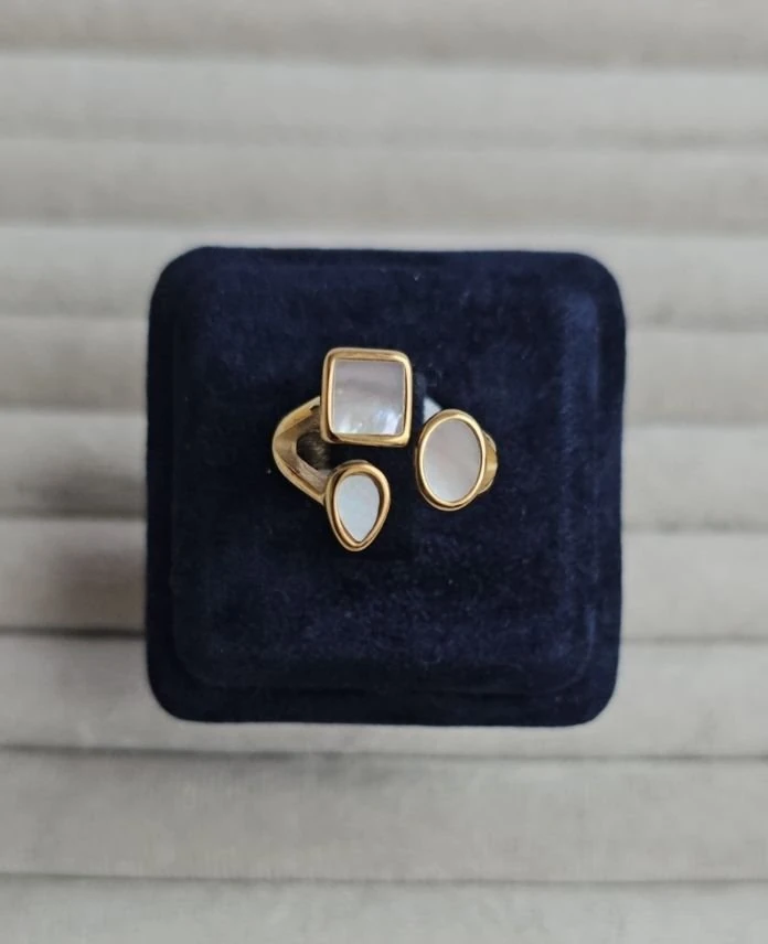 Çelik Ayarlamalı Yuvarlak Elips Kare Sedef Yüzük