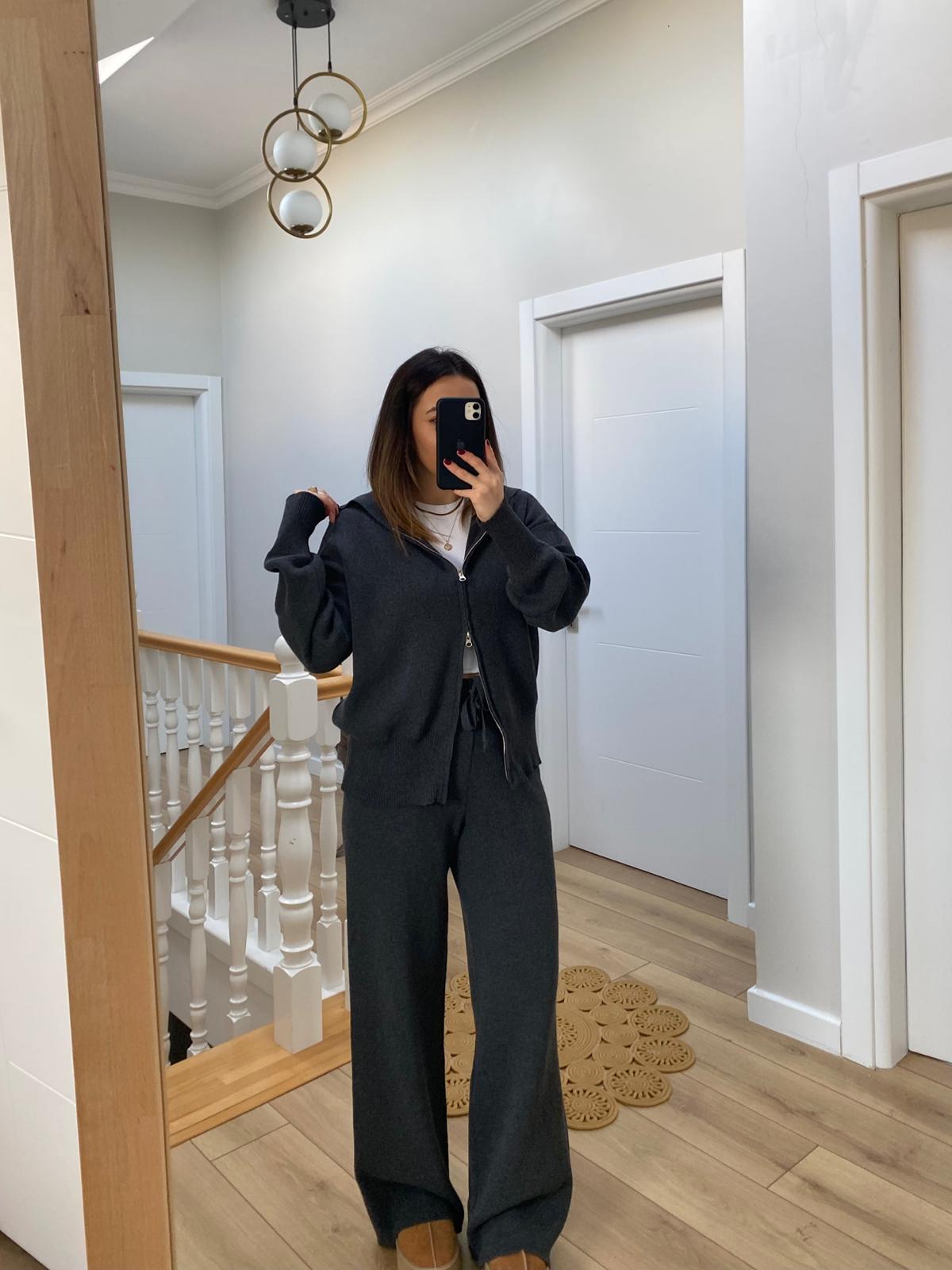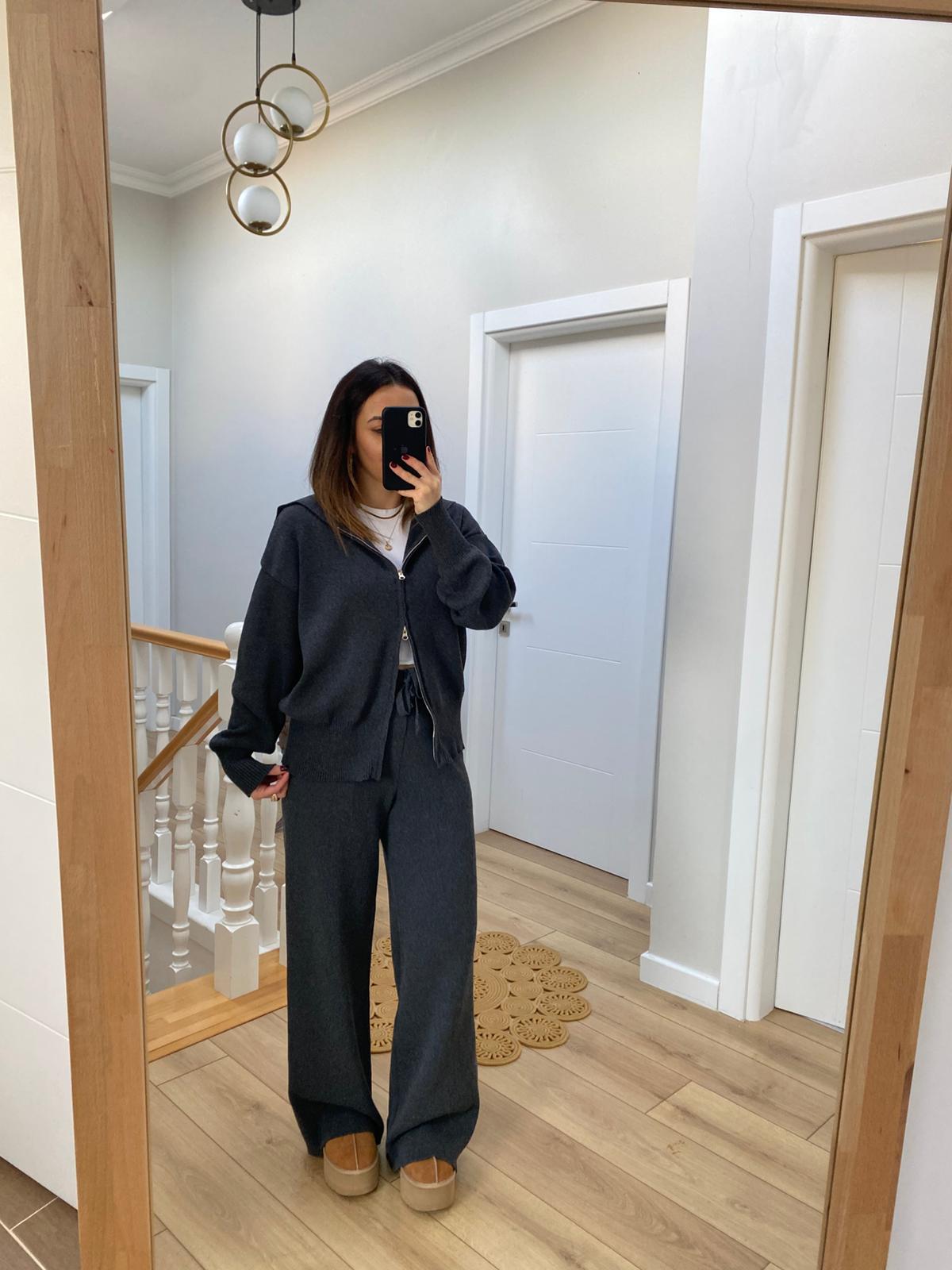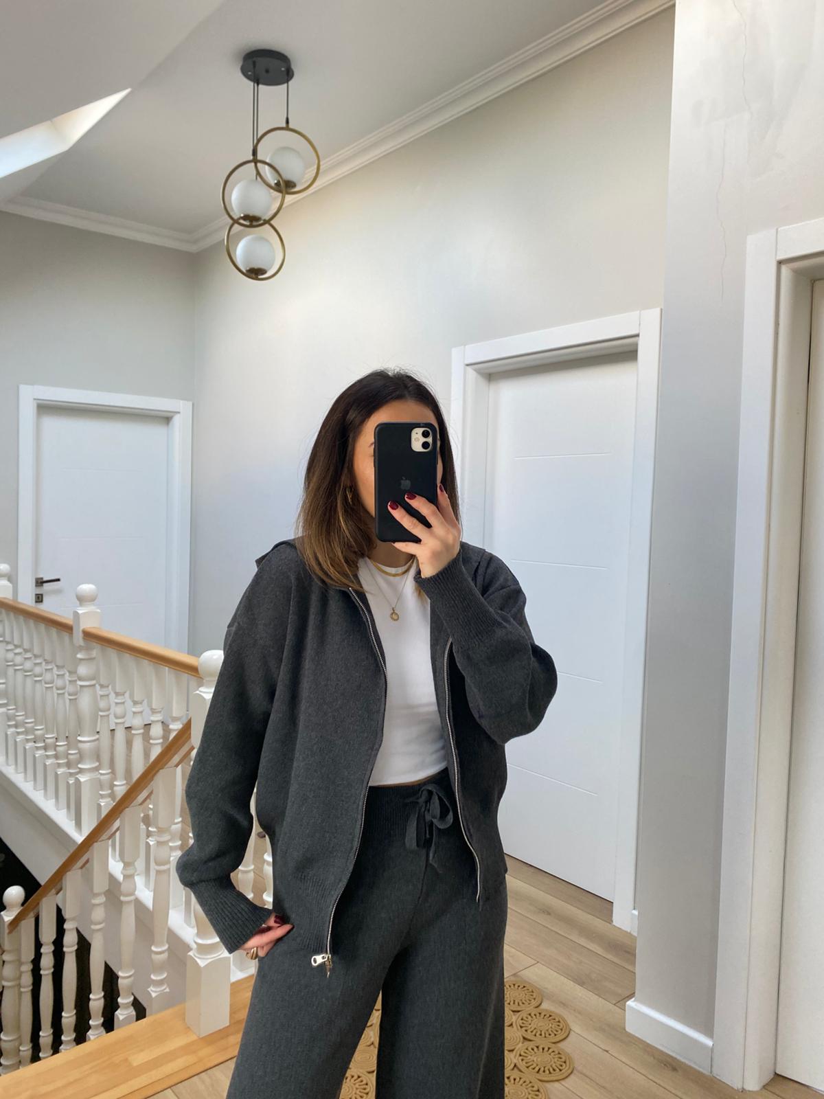 Marka Model Çift Fermuarlı Kapüşonlu Triko Takım