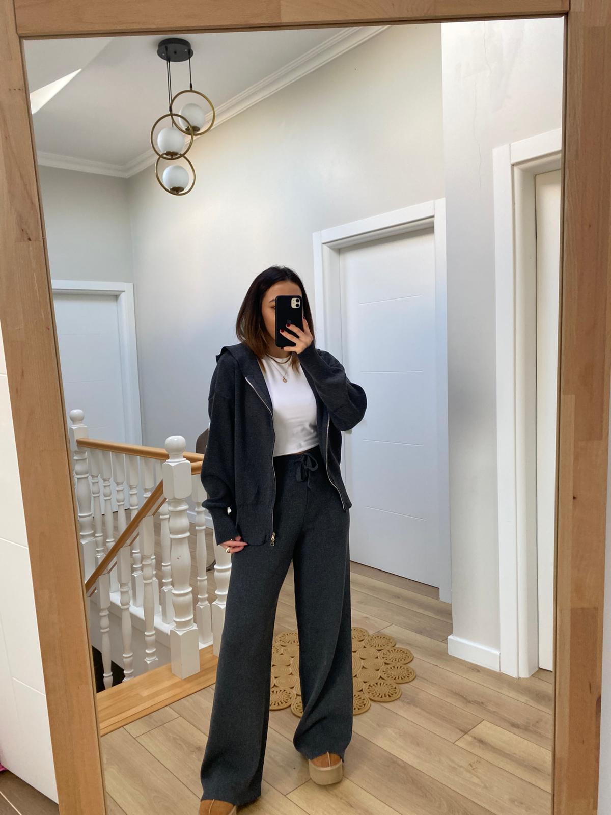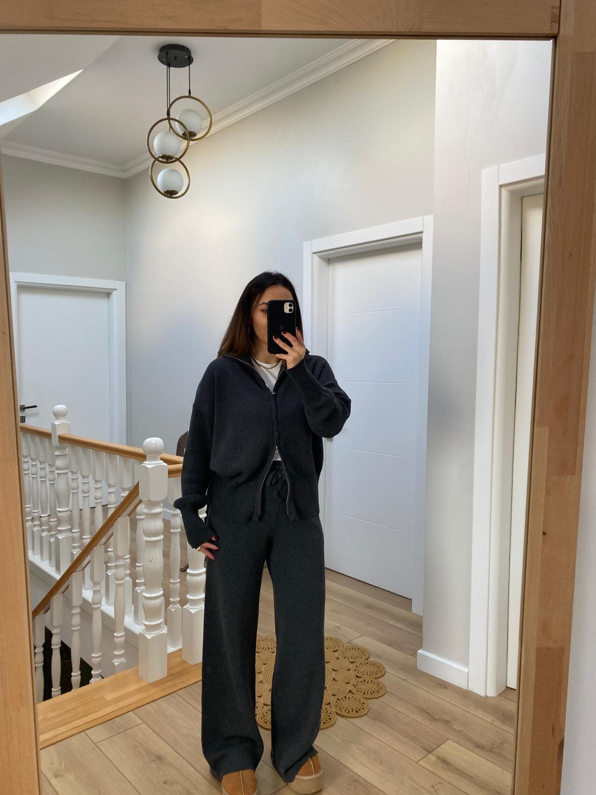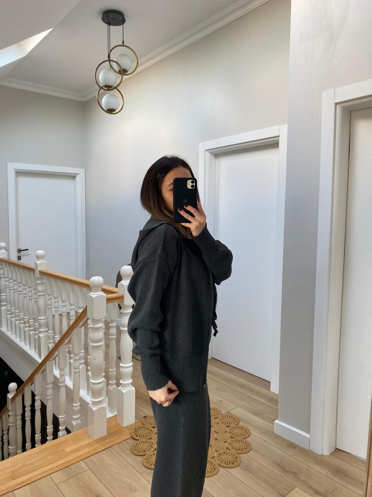 Marka Model Çift Fermuarlı Kapüşonlu Triko Takım