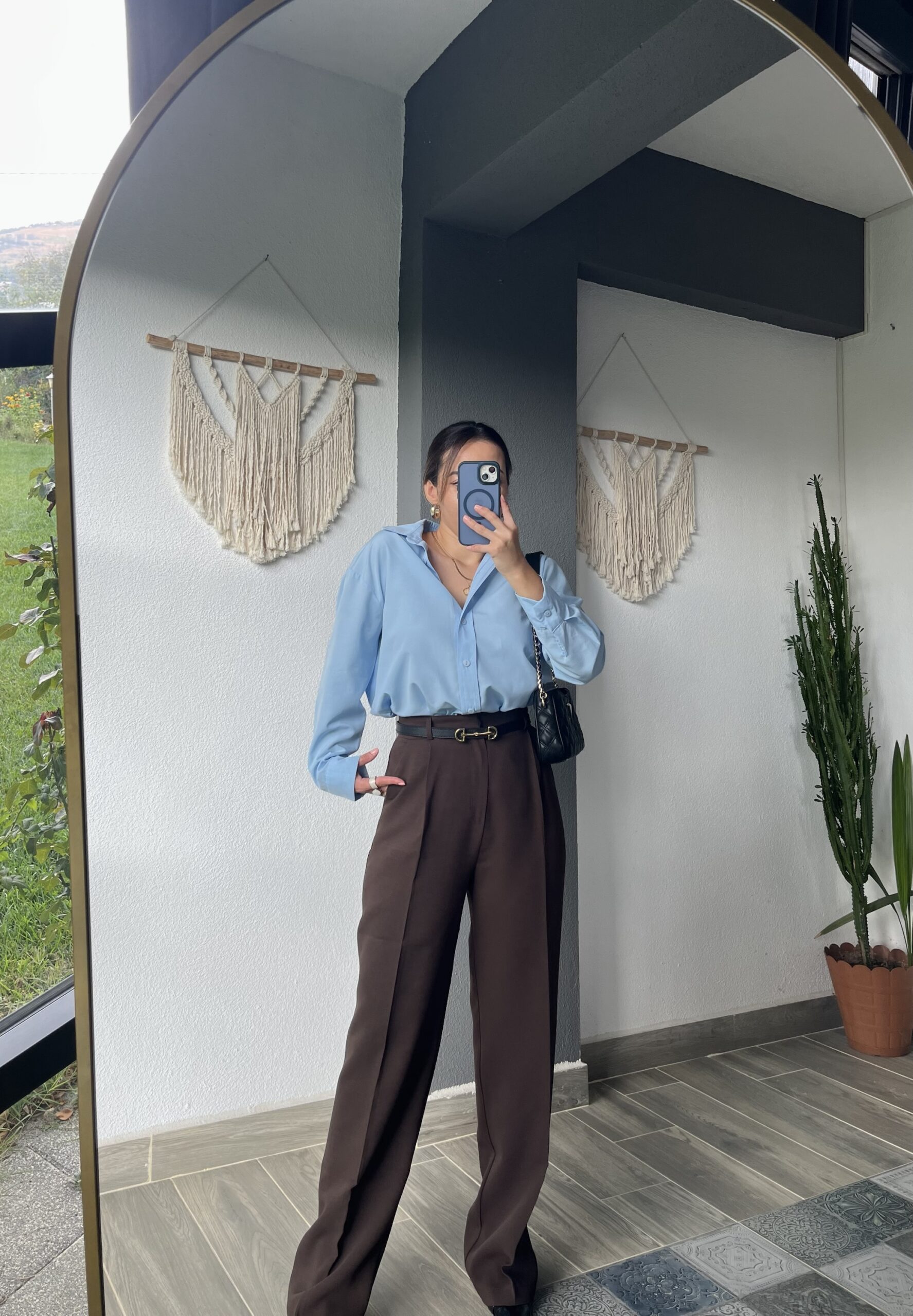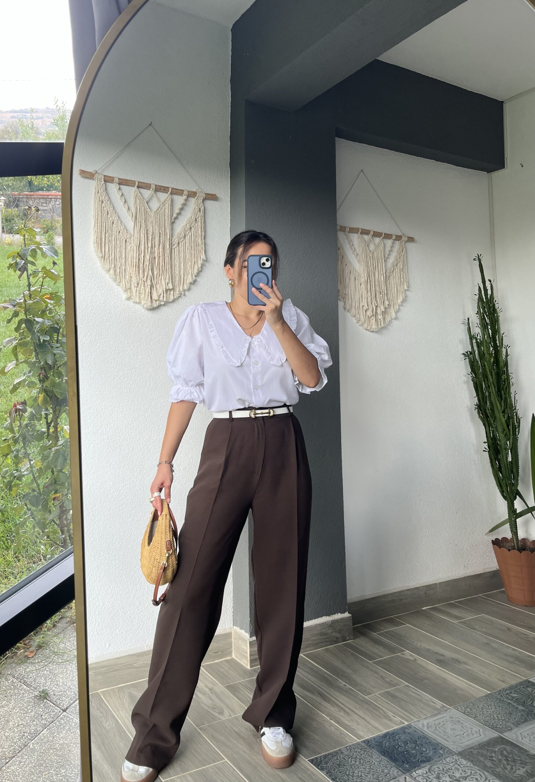 Premium Yüksek Bel Palazzo Pantolon Kahverengi